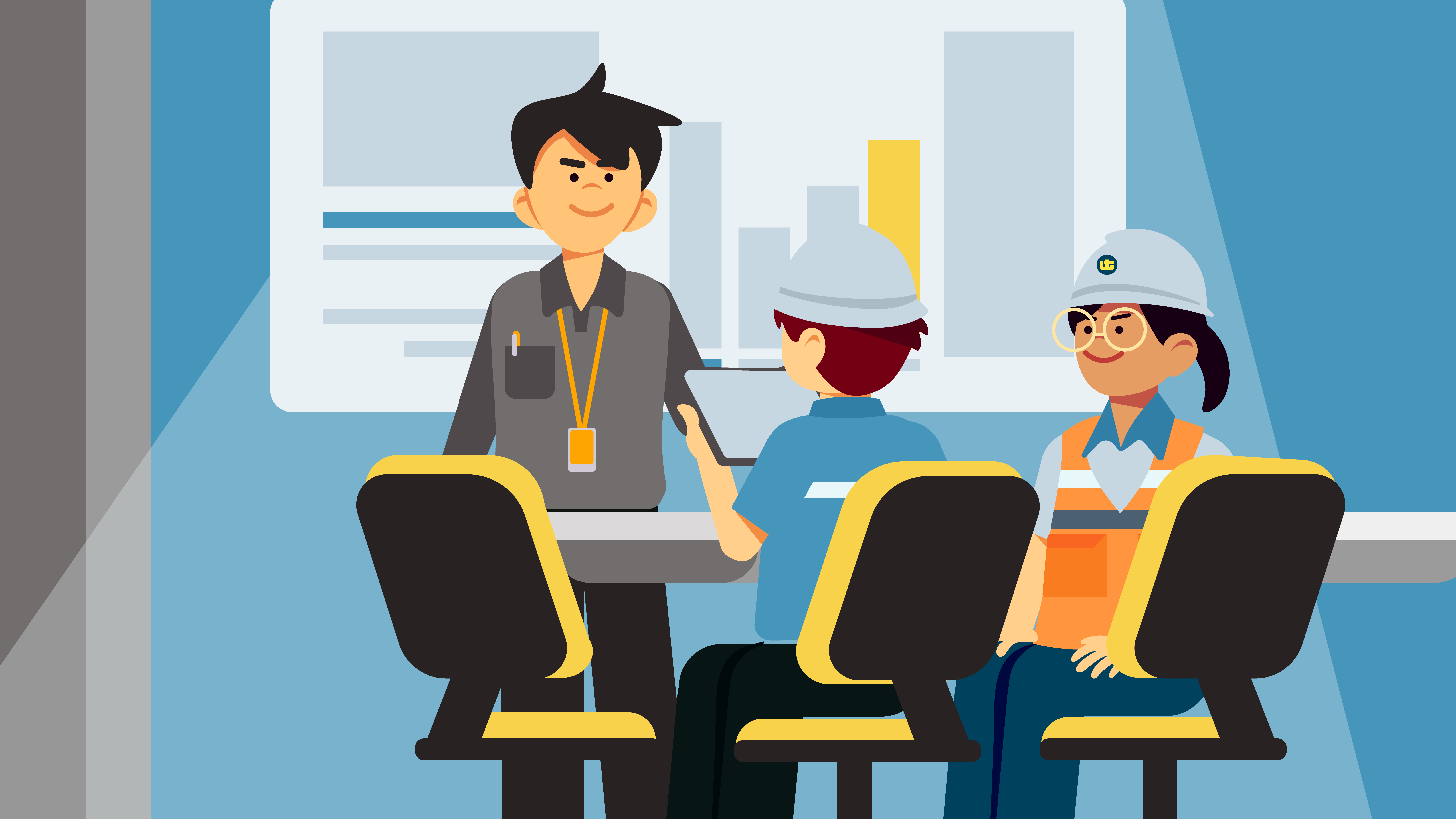 A series of 2D character animation explainer videos intended for employee learning in United Tractors.