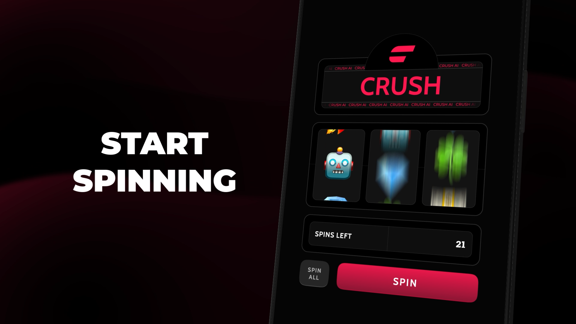 Visually striking motion graphics with 3D animation for Crush AI Slots.